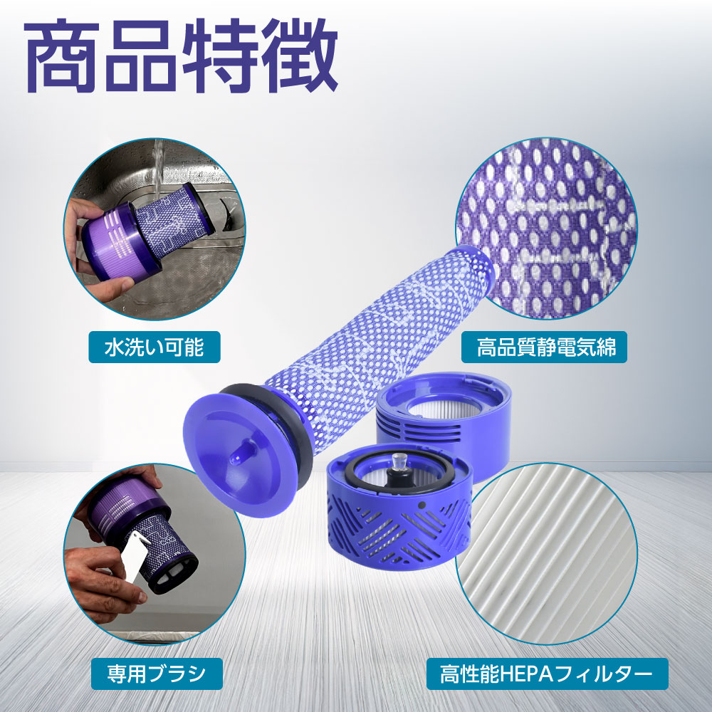 | 商品特徴 | 【対応機種】 967478-01互換(SV10,SV11,HH11 (V7,V8) ) 【SV11】 ・V7 ・V7 Slim ・V7 Slim Origin ・V7 Fluffy ・V7 Fluffy Origin ・V7 Motorhead ・V7 Motorhead Origin ・V7 Absolute ・V7 Animal Pro 【HH11】 ・V7 Car + Boat ・V7 Mattress ・V7 Origin ・V7 Trigger ・V7 Trigger+ ・V7 Trigger Origin ・V7 Trigger Pro 【SV10】 ・V8 Fluffy ・V8 Fluffy+ ・V8 Fluffy Extra ・V8 Slim Fluffy ・V8 Slim Fluffy+ ・V8 Slim Fluffy Extra ・V8 Absolute ・V8 Absolute+ ・V8 Absolute Extra ・V8 Animal ・V8 Animal Pro ・非適合機種:SV25, SV37シリーズ 【純正品と遜色ない性能】 微細な粒子や不快なニオイを効果的に除去し、清潔で快適な室内環境を提供します。 厳格な品質管理により製造され、確かな性能と信頼性をお約束します。 【99.97%の微粒子をキャッチ】 高性能HEPAフィルターが0.3ミクロンの超微細粒子を99.97%以上をキャッチ。 クリーンで健康的な生活空間を提供します。 日常の家庭内汚染物質を効果的に除去し、空気を清潔に保ちます。 【アレルギー対策に最適】 アレルゲンや微細なダストに対応したHEPAフィルターは、アレルギー体質の方にも安心です。 花粉、ペットのフケ、ダニの排泄物など、アレルギーの原因となる粒子を確実に捕らえ、室内環境を清潔に保ちます。 【水洗い可能で清潔】 繰り返し水洗いが可能なため、経済的かつ環境に優しいです。 定期的な水洗いによりフィルターの性能を維持し、長期間にわたり清潔な空気で生活ができます。 簡単な手入れで常に最高の性能を発揮します。 【水洗い時の注意点】 十分に乾いたことを確認してから掃除機に取り付けしてください。 カビや臭い、掃除機故障の原因となります。 【交換目安】 3?6ヶ月での交換を推奨します。 臭いがとれない、音が大きい、掃除機の性能が落ちた気がするなどが確認できたら交換サインです。 【パッケージ内容】 V6, V7, V8対応プレフィルター×2, V7, V8対応ポストフィルター×2, 専用ブラシ×1。 【アフターサービス】 厳格な品質検査を複数回実施し、品質には万全を期しています。 万が一の不良品やモデル間違いによる返品・交換も迅速に対応いたしますので、ご連絡ください。 |