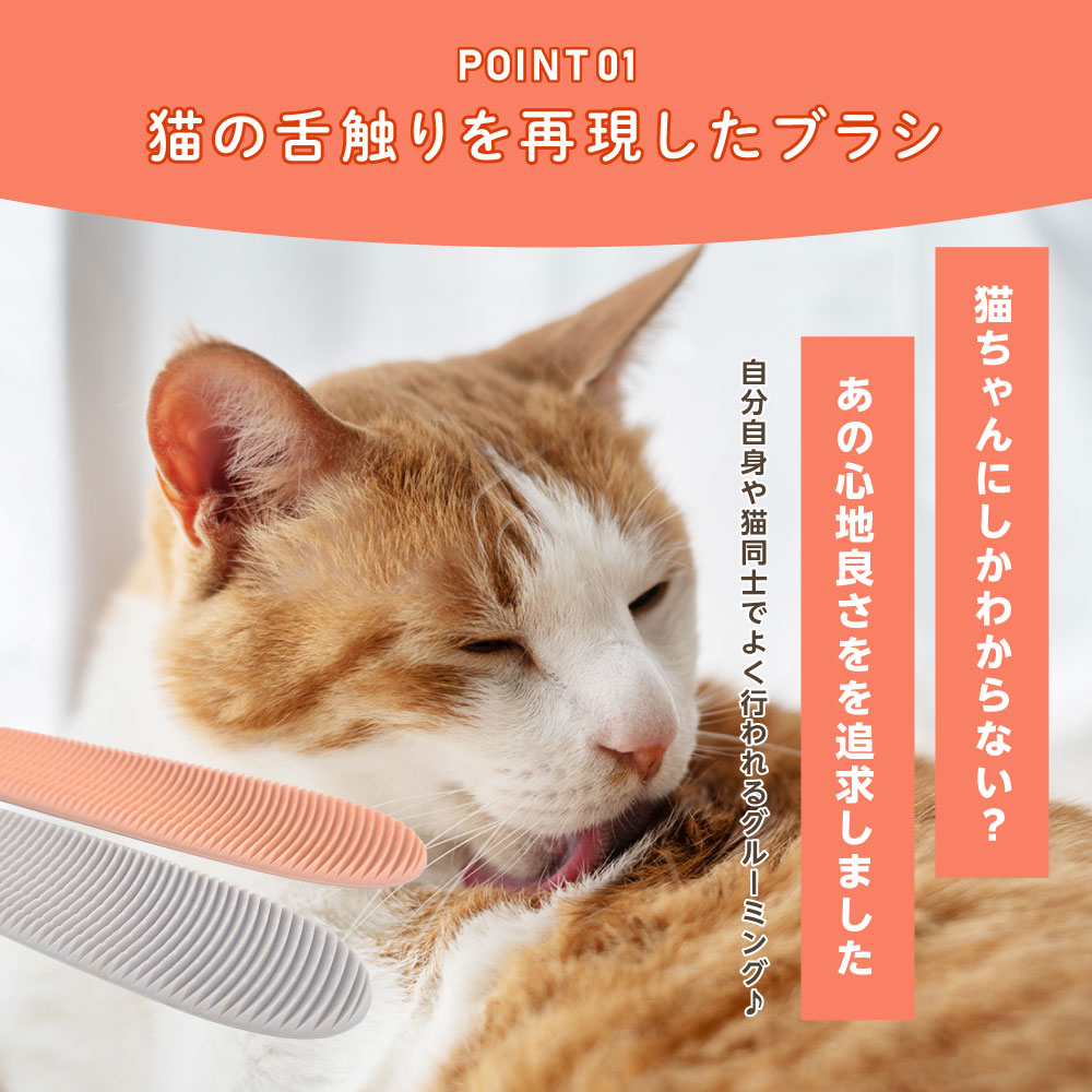 ■猫の舌ざわりを再現自分自身や猫同士でよく行われるグルーミング。猫ちゃんにしかわからない?!あの心地良さを追求したブラシです。