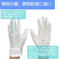 ■掌面の合成皮革は繊維の付着を防ぎ、手袋内側からの異物脱落や汗の付着を防止します。