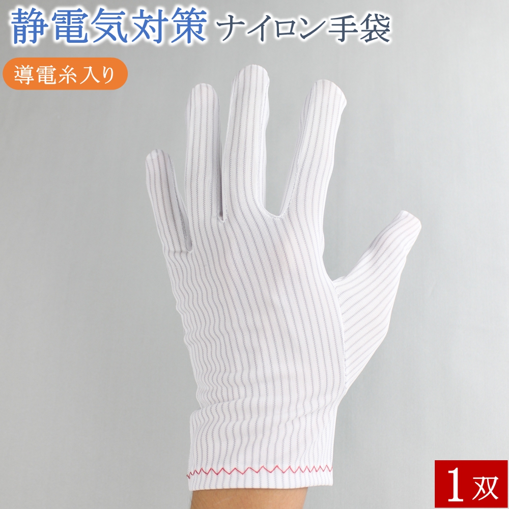 制電手袋 静電気防止 手袋 1双 導電糸入り ナイロン マチ付き 薄手 白手袋 白 カメラ レンズ 品質管理用 制電 静電気対策 作業 検品 メンズ レディース おしゃれ