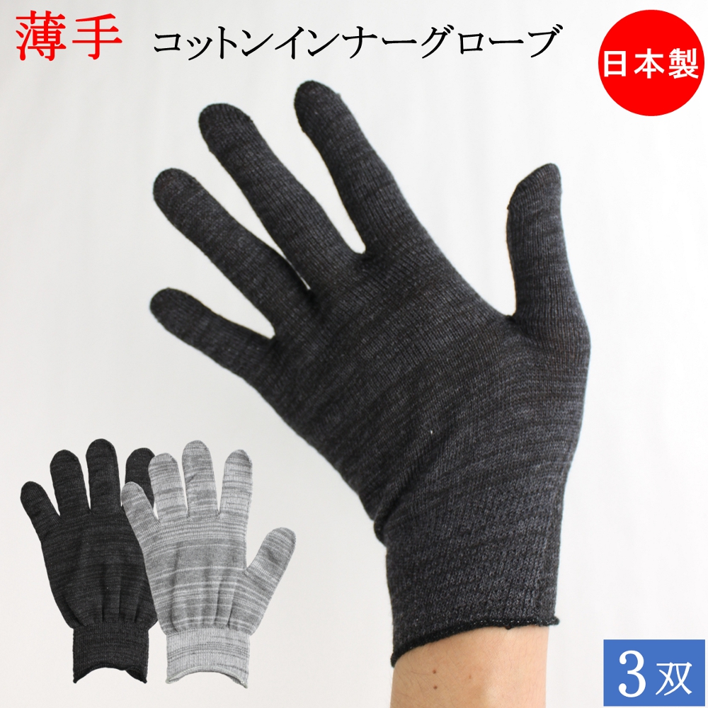 コットン インナー手袋 インナーグローブ 綿手袋 薄手 手袋 3双 フリーサイズ 日本製 綿 ポリエステル 手荒れ インナー おやすみ手袋 男性用 女性用 おしゃれ
