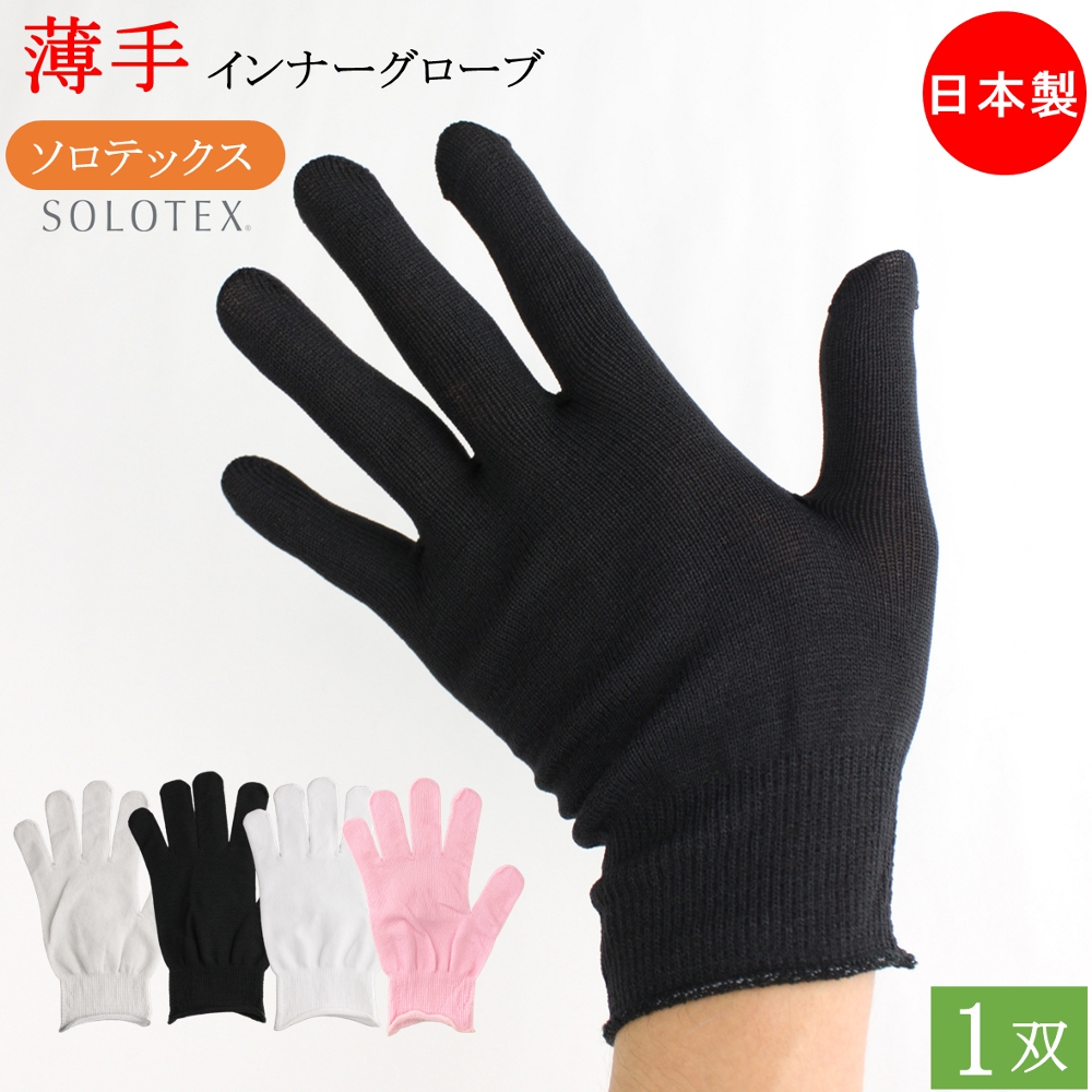 インナー手袋 SOLOTEX インナーグローブ エコ 薄手 手袋 1双 フリーサイズ 黒 ブラック グレー ピンク 白 白手袋 手荒れ キッチン手袋 おしゃれ