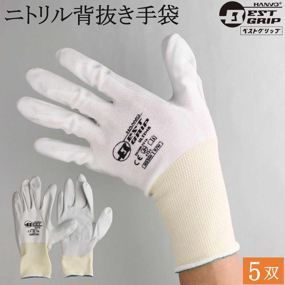 背抜手袋 作業用手袋 BEST GRIP プロスペック・アルティマ NQ300 5双 滑り止め 手袋 ベストグリップ ハンボ HANVO ニトリル メンズ レディース おしゃれ