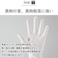 ■掌面の合成皮革は繊維の付着を防ぎ、手袋内側からの異物脱落や汗の付着を防止します。