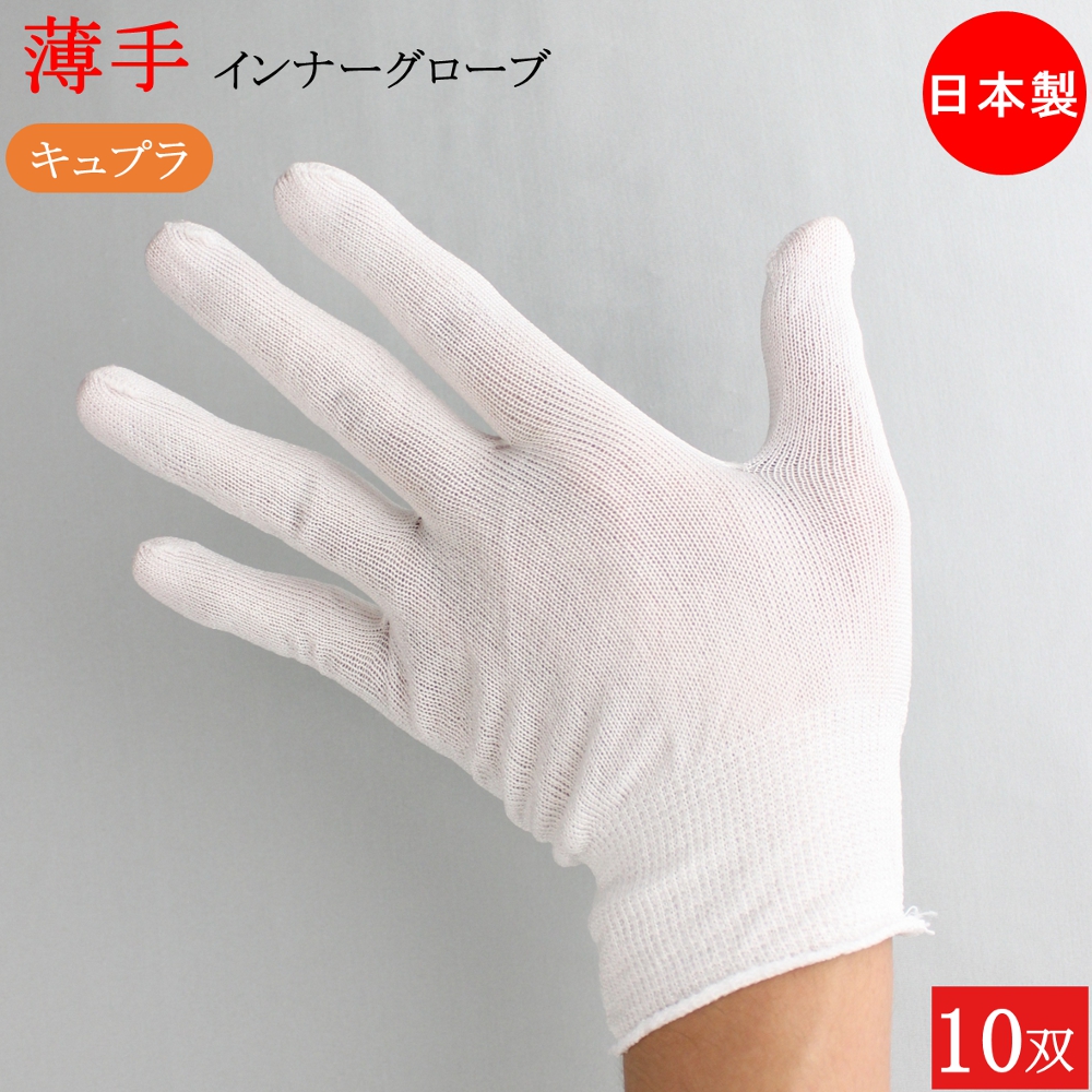 インナー手袋 キュプラインナーグローブ 薄手 ベンベルグ 手袋 10双 フリーサイズ 手荒れ 使い捨て手袋 歯科衛生士 介護 掃除 おしゃれ