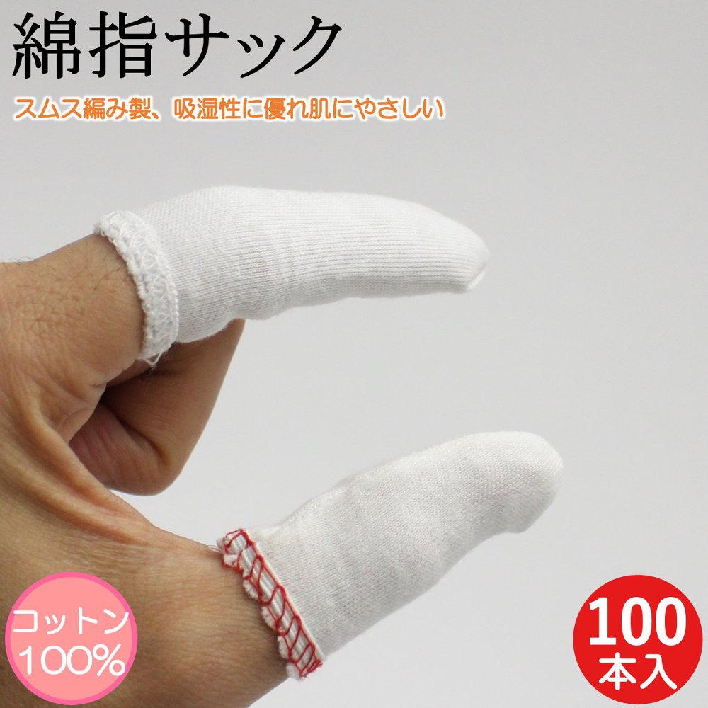 指サック 綿素材 100本 作業用指サック 綿 コットン 保護 親指用 人差し指用 親指 人差指 中指 手荒れ 男性用 女性用 メンズ レディース おしゃれ