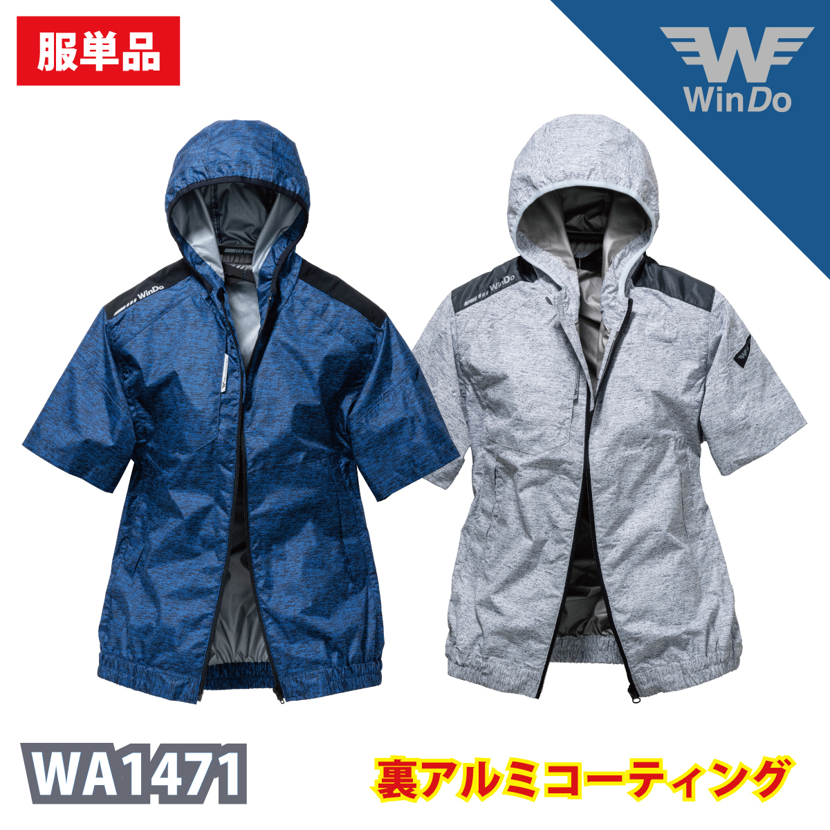 空調作業服 熱中症 熱中症対策 熱射病 フード付き半袖ブルゾン アルミ遮熱UVカット 激涼の通風性 便利な電池操作 ポリエステル100% WinDo WA1471【在庫限り】