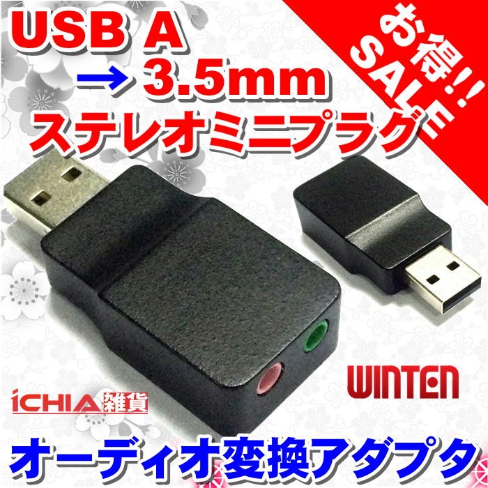 4602 WT-CUME01-BK USB→オーディオ変換アダプタ USB A to 3.5mmステレオミニプラグ(ヘッドホン/マイク)【バルク品】【ネコポス 選択可】