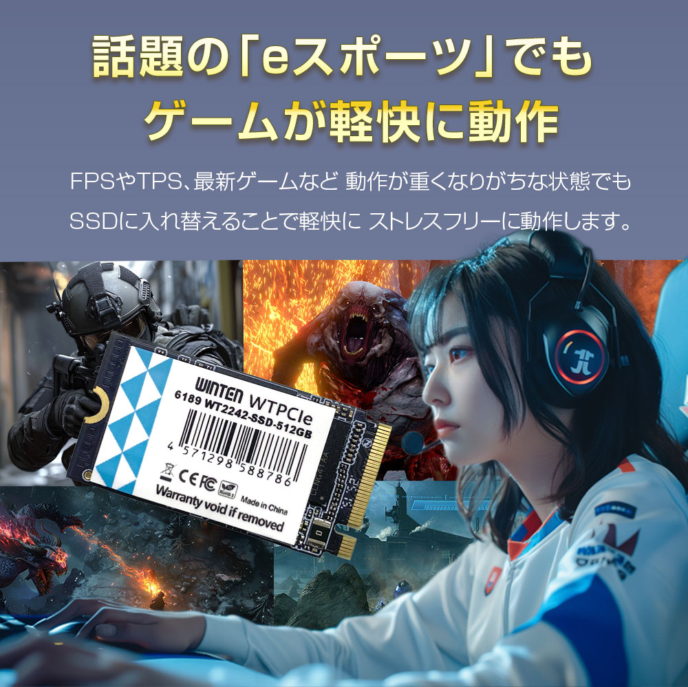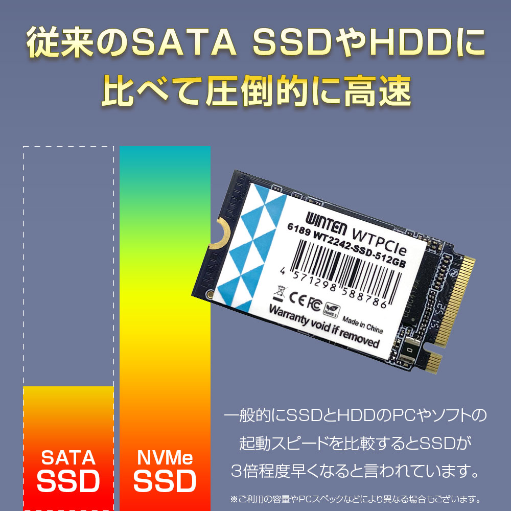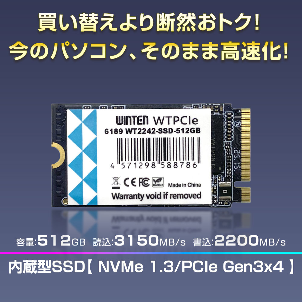 【バルク品】WINTEN 内蔵SSD 512GB SSD M.2 3年保証 NVMe PCIe Gen3.0×4 M.2 Type2242 3D NANDフラッシュ搭載 M Key エラー訂正 省電力 WT2242-SSD-512GB 6189