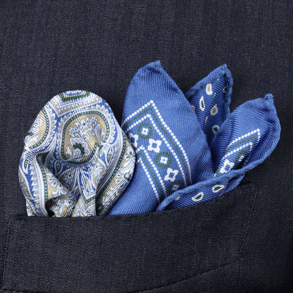| 素材特徴 | イタリア製のシルクプリント生地を使用しました。クラシカルな英国調のパターンをシックなカラートーンでモダンに表現しています。上質なシルク素材を採用したツイル織のプリント生地は、しなやかでありながらも適度なハリとコシがあり、ポケットチーフに最適な素材です。その形状は整いやすく、無造作に挿しても優雅な印象を演出します。 |