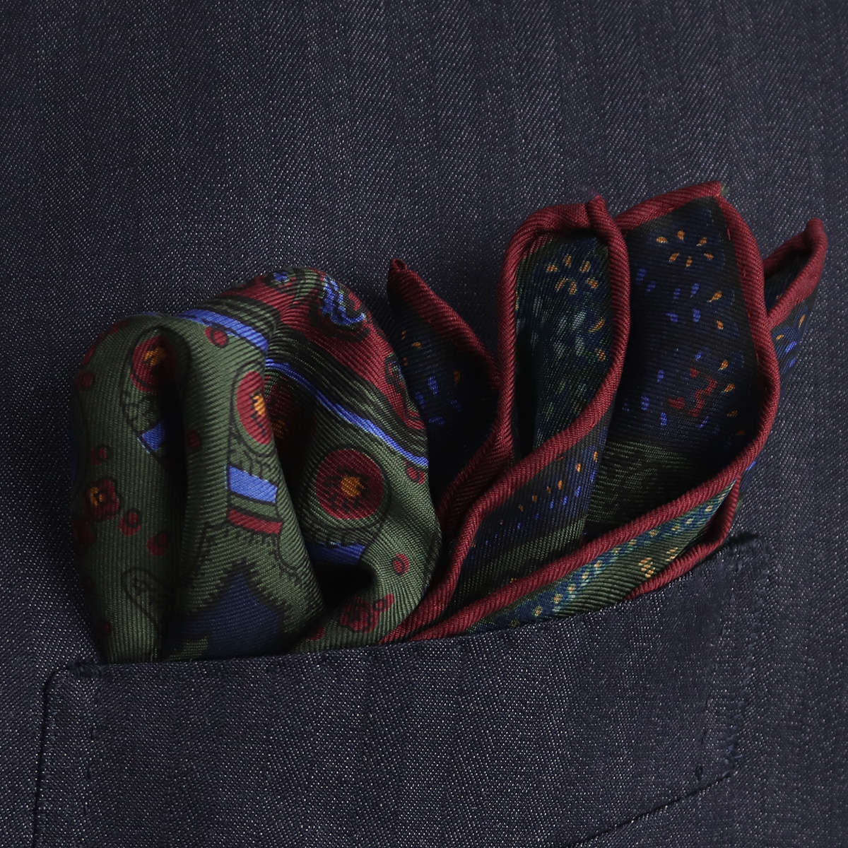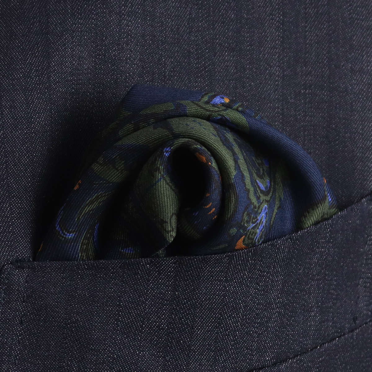 | 素材特徴 | 最高級のシルク生地を使用。 クラシカルな英国調のパターンを、繊細で美しいプリントで表現しています。 上質なシルクを採用したツイル織のプリント生地は、しなやかさと適度なハリ・コシを兼ね備えた仕上がり。 ポケットチーフとして形が整えやすく、無造作に挿しても自然と上品な表情をつくります。 |