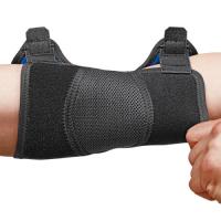 高い圧迫力でヒジ全体の負担を軽減。腕の形状にフィットするアジャスタブル設計。簡単装着の面ファスナー仕様。快適な装着感のダブルラッセル素材。