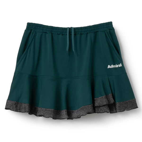 メロー始末のラメニットを施した裾のフレアが重なるようなアシンメトリーデザインで、より動きを華やかに演出するスコート。吸水速乾とUVカットの機能を持ちながら、とろみのある抜群の伸縮性でしなやかな着心地を実現する定番のストレッチ天竺素材を使用。両脇ポケット、ウエスト紐調整有り。