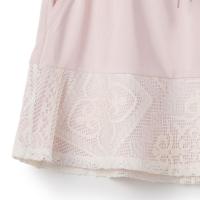 裾を2枚重ね、透け感のあるレースとレイヤーした上品で爽やかな印象のデザインスコート。吸水速乾とUVカットの定番のストレッチ天竺素材を使用。両脇ポケット、ウエスト紐調整有り。
