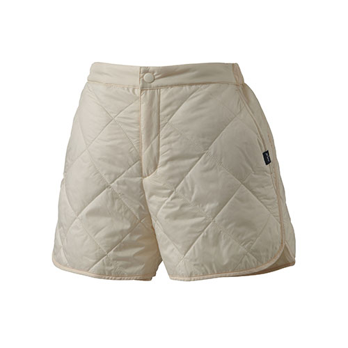 ひし形のキルティングを施し、後ろにボアのポケットを付けた中綿ショートパンツ。
