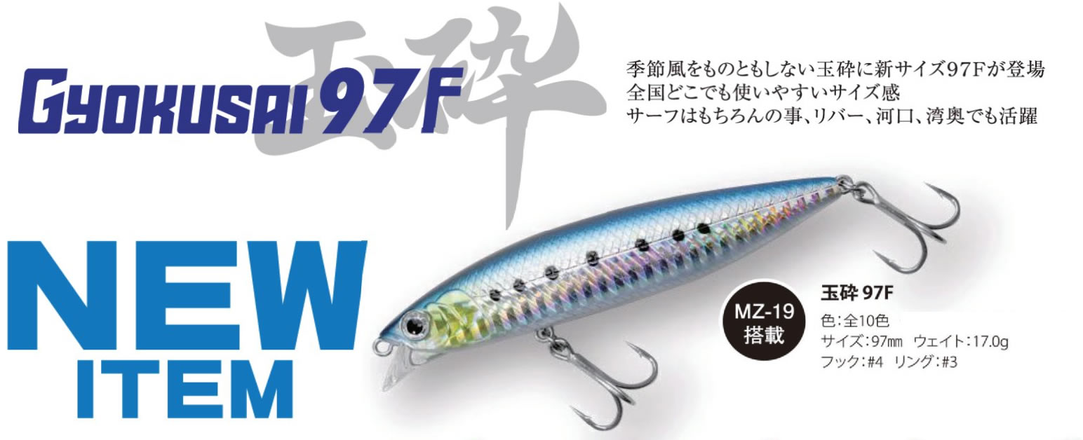 季節風をものともしない玉砕に新サイズ97Fが登場。全国どこでも使いやすいサイズ感。サーフはもちろんの事、リバー、河口、湾奥でも活躍。
