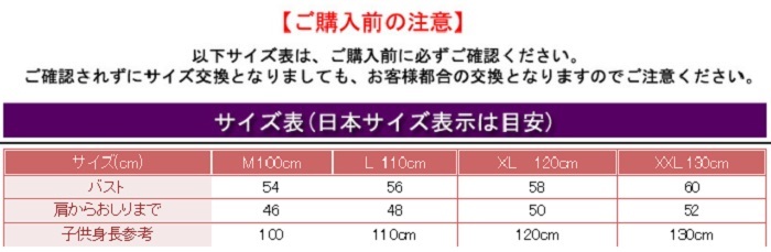 サイズ:100/110/120/130cm <br>