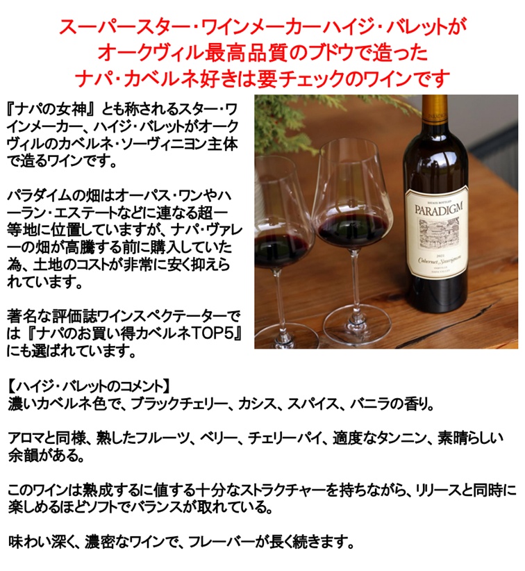 商品名:パラダイム カベルネ ソーヴィニヨン オークヴィル ナパ ヴァレー