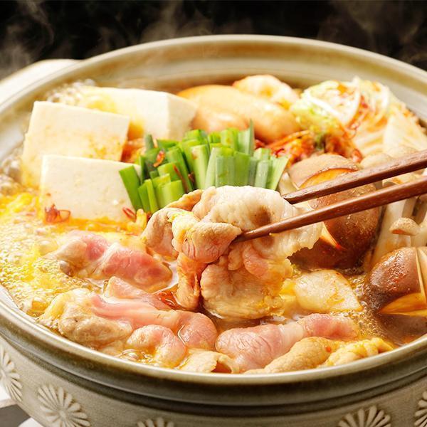 冬に人気のお鍋をピリ辛のチゲ鍋でお楽しみ下さい。三重県産さくらポークは肉の旨味が味わえるバラ肉と上質のロース肉でご用意しました。白菜などお好みの野菜や豆腐などどれとも相性はいい素材です。ラーメンも2袋ついているので、しめのラーメンと満腹感も得られる鍋セットです。