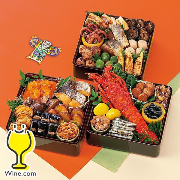 田作り、丹波黒黒豆、里芋含め煮、一口巻昆布、松茸しぐれ、栗の甘露煮、味付しいたけ、穂先竹の子、宝喜子、ぶりの照焼、鰆の柚庵焼、たこのやわらか煮、とりつくね、焼ほたて、豚の角煮、くるみ艶煮、イセエビの姿蒸(ミナミイセエビ使用)、あさりのうま煮、若桃甘露煮、さつまいも黄金煮(レモン煮)、海老チリソース煮、海老ピー