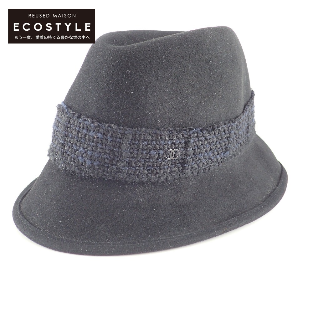 CHANEL シャネル ラビットウール 中折れハット/ 帽子 L ブラック レディース