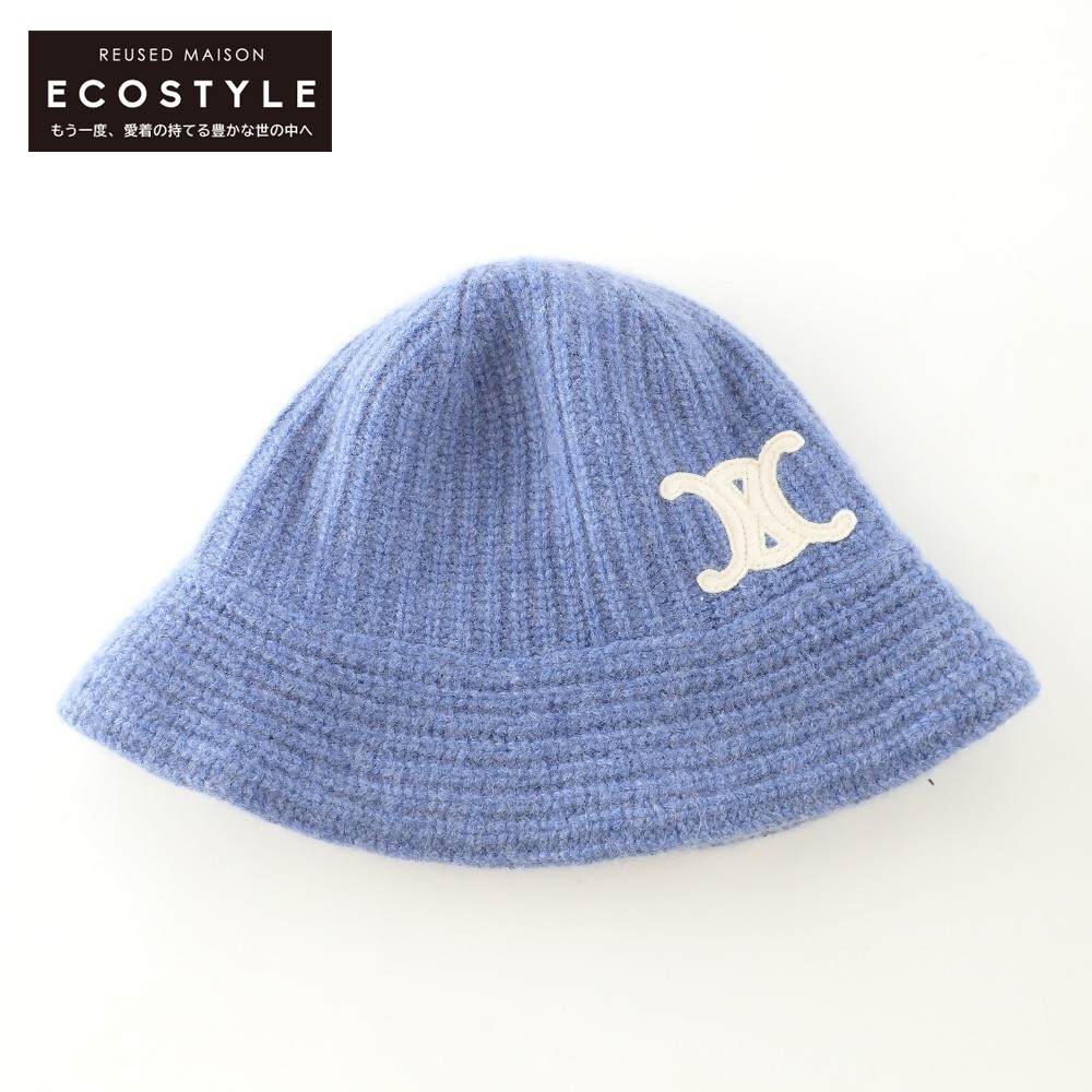 美品/国内正規 CELINE セリーヌ 2A80T384D カシミア100% トリオンフ クロシェハット/ 帽子 TU ブルー レディース