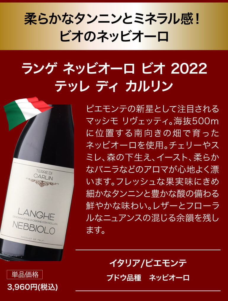 ●ランゲ ネッビオーロ ビオ 2022 テッレ ディ カルリン