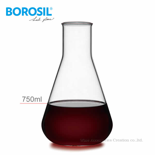 実験や研究で使用されるビーカーやフラスコなどの理化学用ガラス製品を作り続けている1962年創業のBOROSIL(ボロシル)社。液体を入れてかき混ぜたり、熱を加えたりと過酷な環境でも耐え得る極めて堅牢なつくりと耐熱性、昔から変わらぬ無駄のない美しいデザインが最大の魅力です。まさに「機能美の極み」とも言える使いやすく丈夫でシンプルなフラスコを、ワインのデキャンタとしてご提案。ワインをフラスコに入れ、ネック部分を持ってスワリング(クルクル回す動作)をすることで、ワインが渦を巻きながら空気と触れ合うため、閉じたワインを早く開かせることができます。ワインやウォーターはもちろん、材料を計測する、液体を注ぐ、花器やディスプレイなど様々なシーンで活躍してくれます。