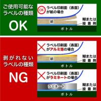 また、ラベル表面のみを剥がすため、ボトルからラベル紙全てを剥がす事は出来ませんので、予めご了承ください。