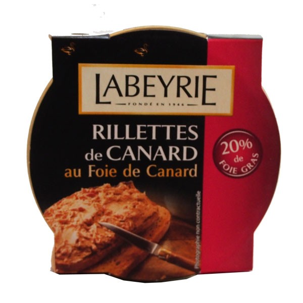 LABEYRIE RILLETTES de CANARD フォアグラが20%入った、ゴージャスなリエットです。じっくりと煮込んだ柔らかい鴨肉と、上質なフォアグラをざっくりと混ぜ込んだ贅沢な逸品。濃厚な味のお好きな方にお勧めです。