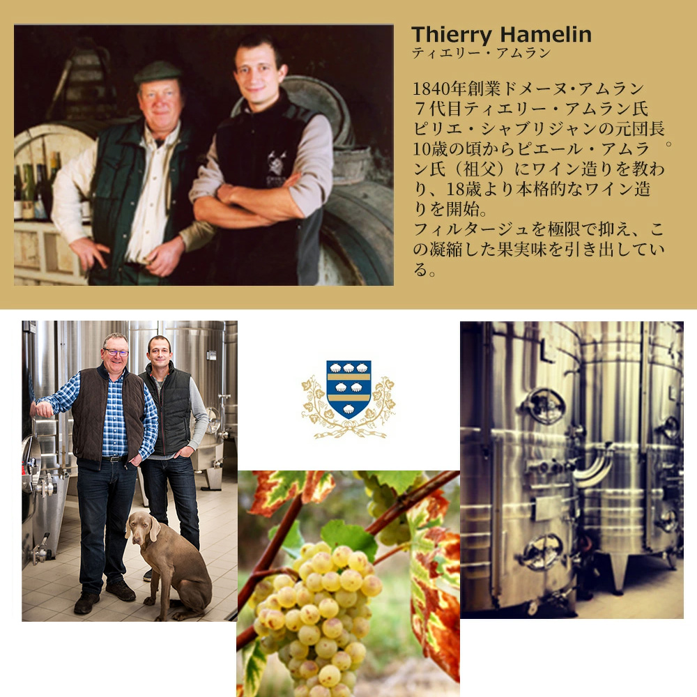 シャブリ地区で1840年から歴史ある名門ドメーヌ!現当主のティエリー・アムラン氏は、ピエリ・シャブリジャン(シャブリ騎士団)の元団長。10歳の頃からピエール・アムラン氏(祖父)にワイン造りを教わる。18歳より本格的なワイン造りを開始。