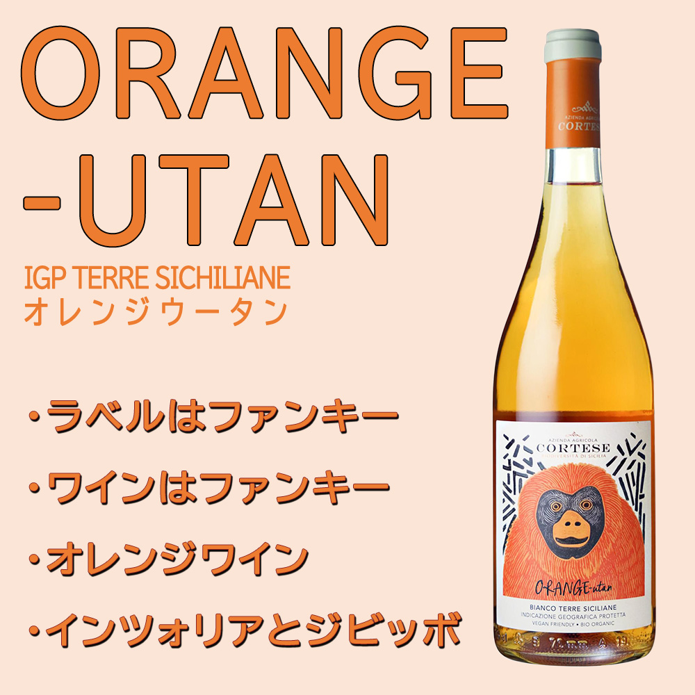 イタリア・シチリア島から人気辛口オレンジワイン!世界的に人気のオレンジワイン!その名もオレンジウータン(オレンジワイン)!「ラベル(オレンジのオランウータン)はファンキーだが、ワインはクリーン!」。土着品種(インツォリア種80%&ジビッボ種20%)をブレンドして造る果実味豊かなオレンジワイン! ■さまざまなギフトアイテムをご用意しております。お中元 ギフト 御中元 お盆 お礼 敬老の日 クリスマス 冬ギフト お歳暮 御歳暮 お年賀 御年賀 お正月 年末年始 ご挨拶 バレンタイン ホワイトデー お返し 父の日 母の日 ギフト 贈答品 お土産 手土産 御祝 御礼 内祝い 引き出物 お祝い 結婚祝い 結婚内祝い 出産祝い 出産内祝い 引き菓子 快気祝い 快気内祝い 進学祝い 誕生日祝い バースデーケーキ プレゼント Wedding ウェディング ホームパーティ お花見 パーティ 退職ギフト 退職 就任祝い0219002017613
