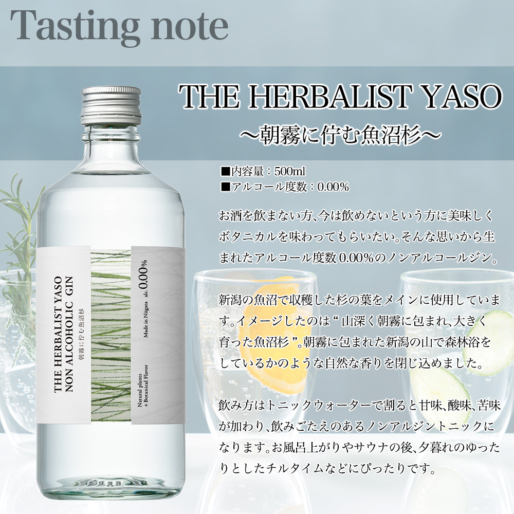 【正規品】THE HERBALIST YASO 朝霧に佇む魚沼杉 NON ALCOHOLIC GIN ノンアルコールジン 500ml 0.00%