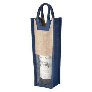 麻ワインバッグ窓付1本用 ブルー 10個セット