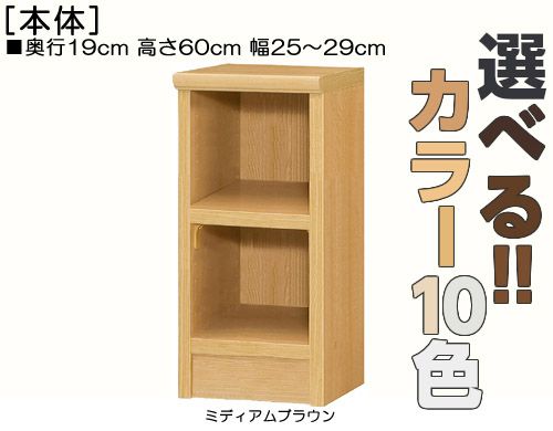 キャビネット、書庫 欲しいサイズが!横幅を1cm単位でオーダー!棚板厚さ2.5cm 本棚。 奥行19cm×高さ60cm×幅25〜29cm