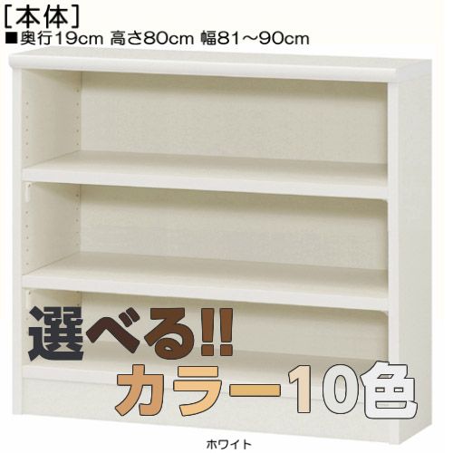 カウンター下収納 高さ80cm幅81〜90cm奥行19cm厚棚板(棚板厚み2.5cm)付録ラック 10色 事務所棚片付け