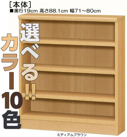 本棚、書棚 欲しいサイズが!横幅を1cm単位でオーダー!棚板厚さ2.5cm 本棚。 奥行19cm×高さ88.1cm×幅71〜80cm