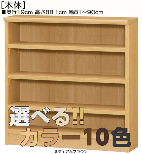 本棚、書棚 欲しいサイズが!横幅を1cm単位でオーダー!棚板厚さ2.5cm 本棚。 奥行19cm×高さ88.1cm×幅81〜90cm