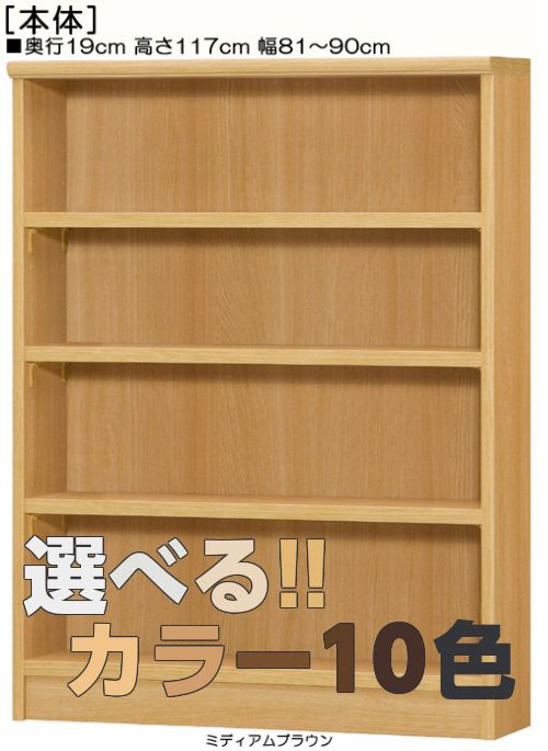 本棚、書棚 欲しいサイズが!横幅を1cm単位でオーダー!棚板厚さ2.5cm 本棚。 奥行19cm×高さ117cm×幅81〜90cm