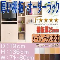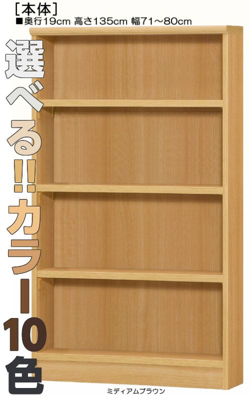 本棚、書棚 欲しいサイズが!横幅を1cm単位でオーダー!棚板厚さ2.5cm 本棚。 奥行19cm×高さ135cm×幅71〜80cm
