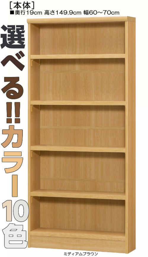 本棚、書棚 欲しいサイズが!横幅を1cm単位でオーダー!棚板厚さ2.5cm 本棚。 奥行19cm×高さ149.9cm×幅60〜70cm