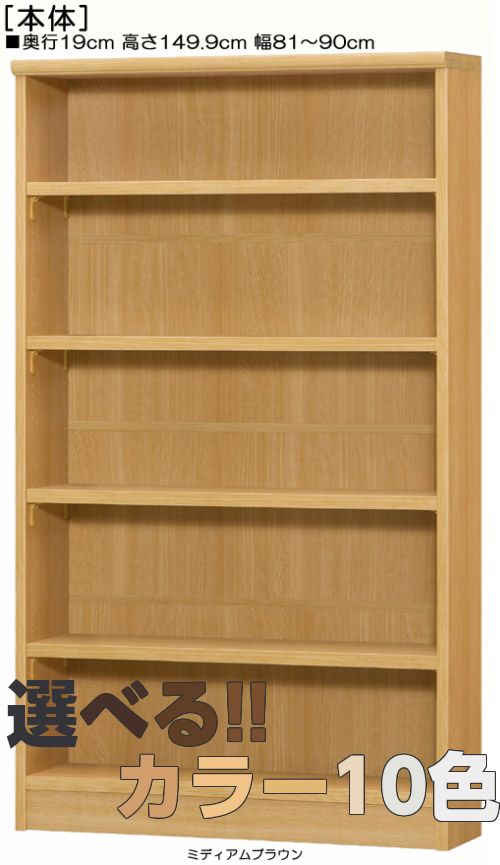 本棚、書棚 欲しいサイズが!横幅を1cm単位でオーダー!棚板厚さ2.5cm 本棚。 奥行19cm×高さ149.9cm×幅81〜90cm