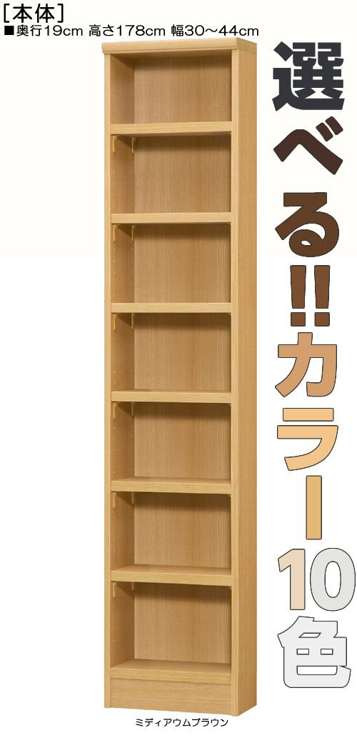 キャビネット、書庫 欲しいサイズが!横幅を1cm単位でオーダー!棚板厚さ2.5cm 本棚。 奥行19cm×高さ178cm×幅30〜44cm