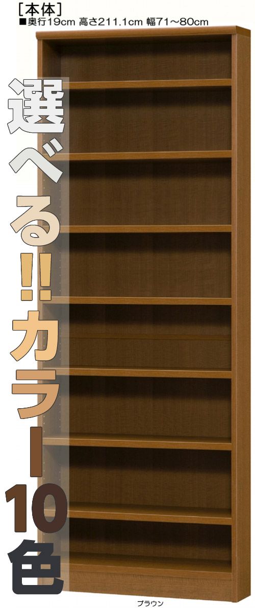 壁面本棚 高さ211.1cm幅71〜80cm奥行19cm厚棚板(棚板厚み2.5cm)オーディオ棚 ホワイト ウォークインクローゼットボード保管