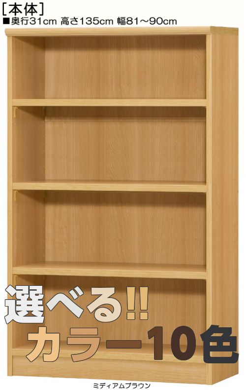 壁面システム収納 ピッタリサイズ!横幅を1cm単位でオーダー!棚板厚さ2.5cm 本棚。 奥行31cm×高さ135cm×幅81〜90cm