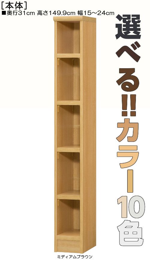 リビング隙間収納 高さ149.9cm幅15〜24cm奥行31cm厚棚板(棚板厚み2.5cm)ゲームソフト収納 国産 集会所ラック整理