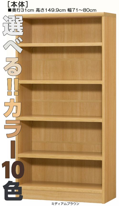 壁面本棚 高さ149.9cm幅71〜80cm奥行31cm厚棚板(棚板厚み2.5cm)マガジンラック 10色 客間シェルフ片付け