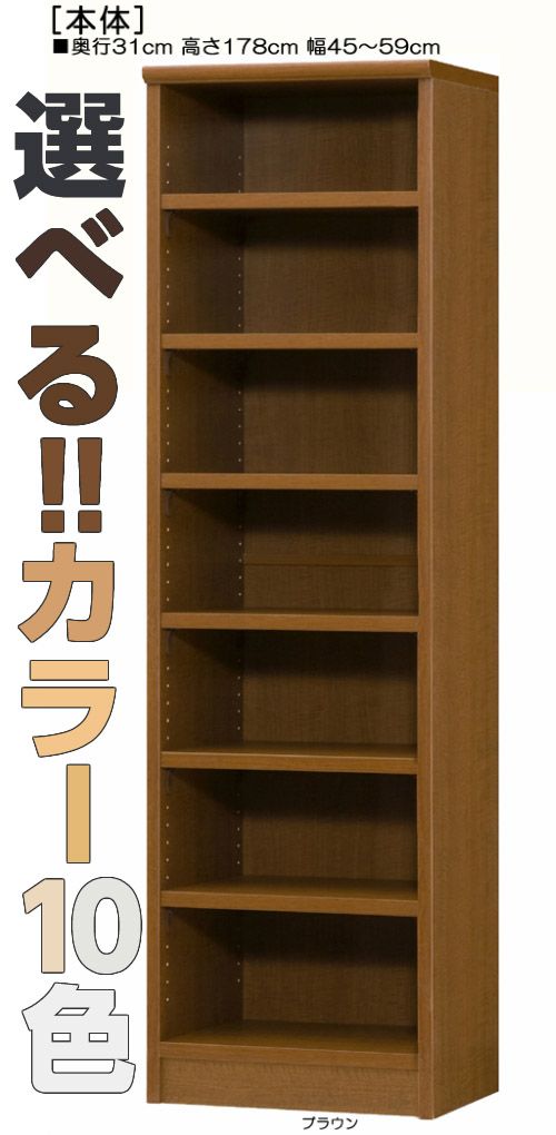 キッチン棚 高さ178cm幅45〜59cm奥行31cm厚棚板(棚板厚み2.5cm)漫画ディスプレイ 国産 キッチンラック保管