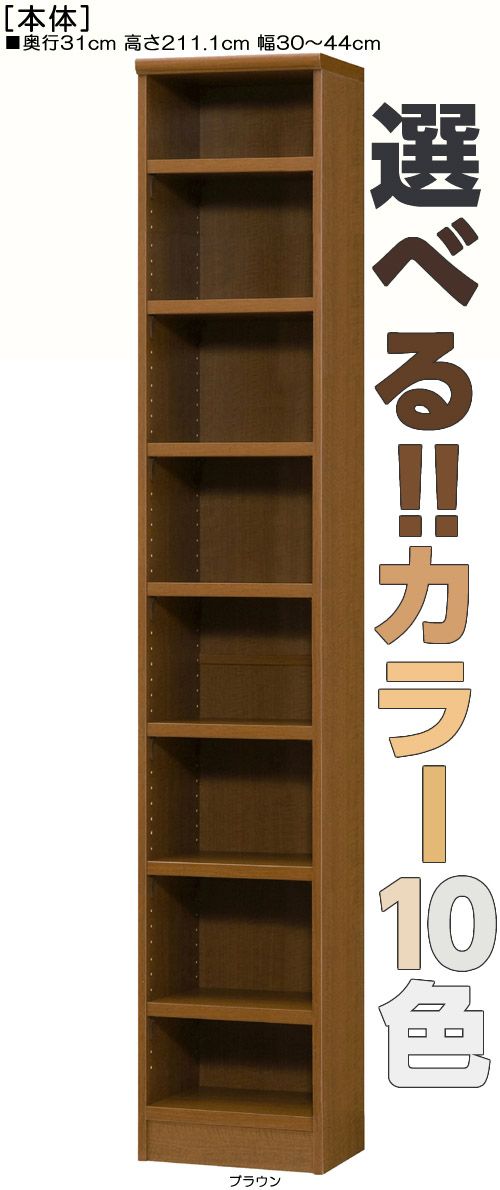 壁面書庫 高さ211.1cm幅30〜44cm奥行31cm厚棚板(棚板厚み2.5cm)付録ラック 10色 事務所棚片付け