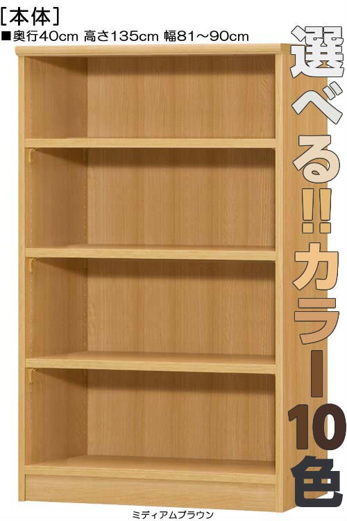 キャビネット、書庫 ジャストサイズ!横幅を1cm単位でオーダー!棚板厚さ2.5cm 本棚。 奥行40cm×高さ135cm×幅81〜90cm